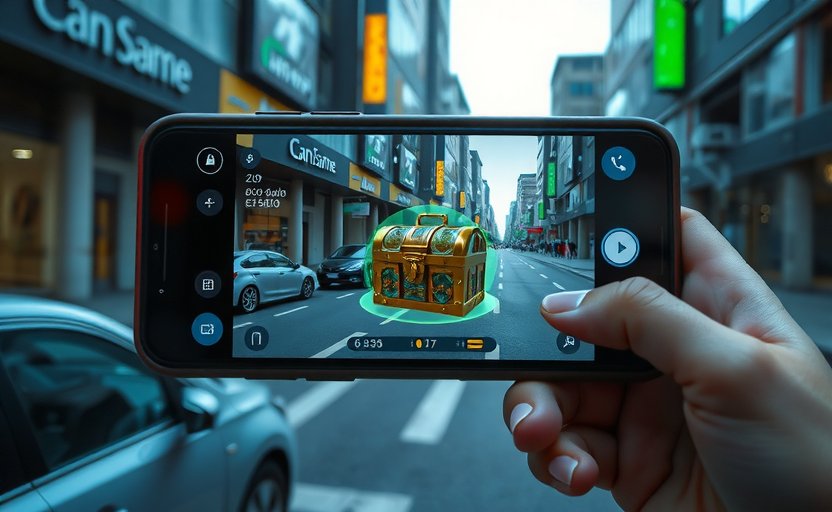 Immersive AR treasure hunt blending real-world exploration with virtual adventures.